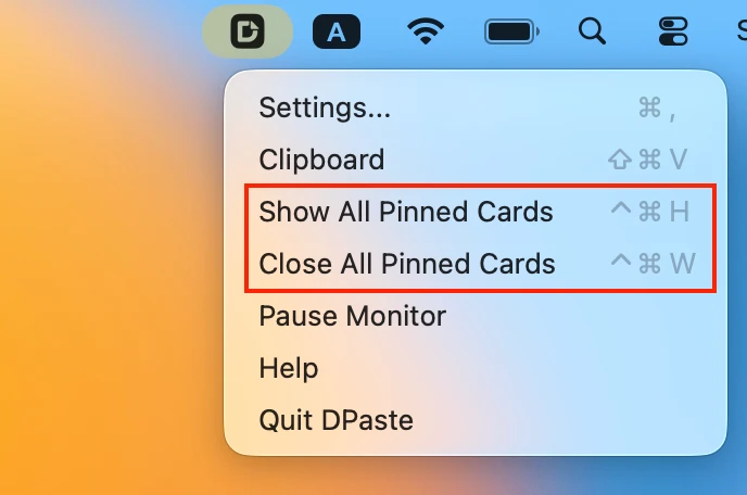 ⌘ + Shift + P to directly pin the most recently copied contentManage Pinned Windows